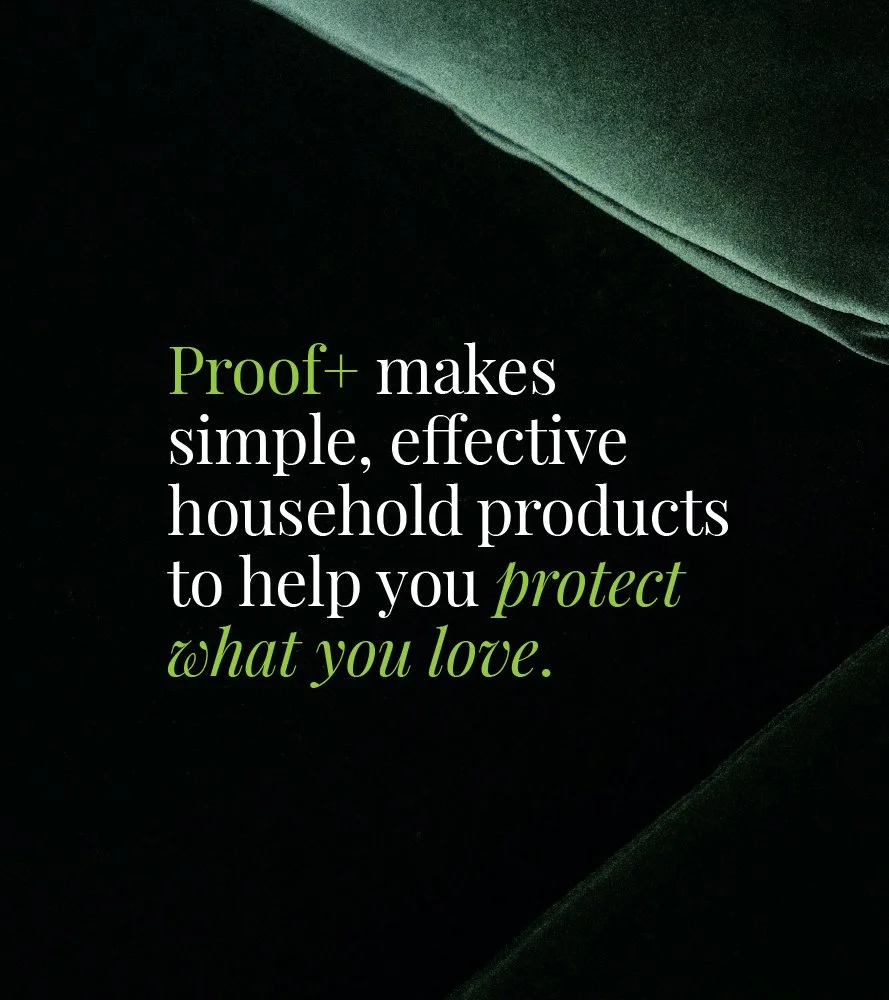 For people who take care of their families, their belongings, and the planet, Proof+ makes household essentials that live up to a higher standard for performance and safety, so customers can have confidence that who and what they love are protected.